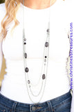 Varying in shape and shimmer, black beads trickle along a shimmery silver chain for a neutral look. Infused with faceted silver beads, the neutral strands alternate across the chest with shiny silver chains, creating whimsical layers. Features an adjustable clasp closure. Sold as one individual necklace. Includes one pair of matching earrings.