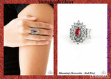 Dotted in dainty white rhinestones, silver petals radiate from a regal red marquise shaped rhinestone center for an edgy look. Features a stretchy band for a flexible fit. Sold as one individual ring.