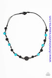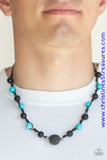 A collection of polished black beads and refreshing turquoise stone beads are knotted in place along a shiny black cord. Infused with dainty metallic accents, a black lava rock adorns the center of the piece for a seasonal finish. Features a button-loop closure. Sold as one individual necklace.