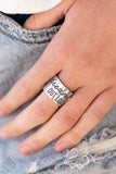 The front of a thick silver band is stamped in the phrase, "Dream out loud," creating an inspirational centerpiece across the finger. Features a stretchy band for a flexible fit. Sold as one individual ring.