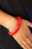 Chiseled into smooth rectangular frames, fiery red stone pieces are threaded along stretchy bands and linked around the wrist for an earthy look. Sold as one individual bracelet.