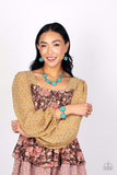 Flat turquoise stones are pressed into brass frames, creating a bold, rustic statement piece. The irregular shape of the stones brings an artisanal touch to the design, as the hinge-like links connect the colorful stones along the collar. Features an adjustable clasp closure. As the stone elements in this piece are natural, some color variation is normal. Sold as one individual necklace. Includes one pair of matching earrings.