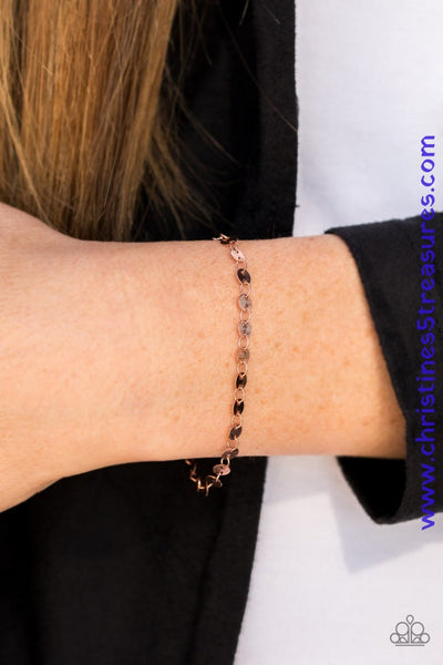 Dainty flat copper discs link across the wrist in an undeniably shimmery fashion. Features an adjustable clasp closure. Sold as one individual bracelet.