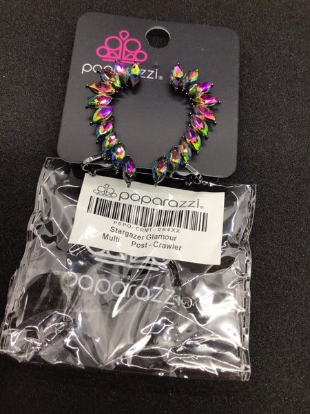 A stellar stack of marquise oil spill rhinestones curve up the ear, creating a smoldering sparkle. Features a clip-on fitting at the top for a secure fit. Sold as one pair of ear crawlers.