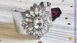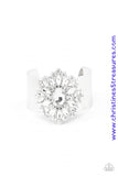 Featuring round and marquise style cuts, an explosion of sparkling white rhinestones flare from an oval gem, creating a glamorous floral pendant atop a thick silver cuff. Sold as one individual bracelet.